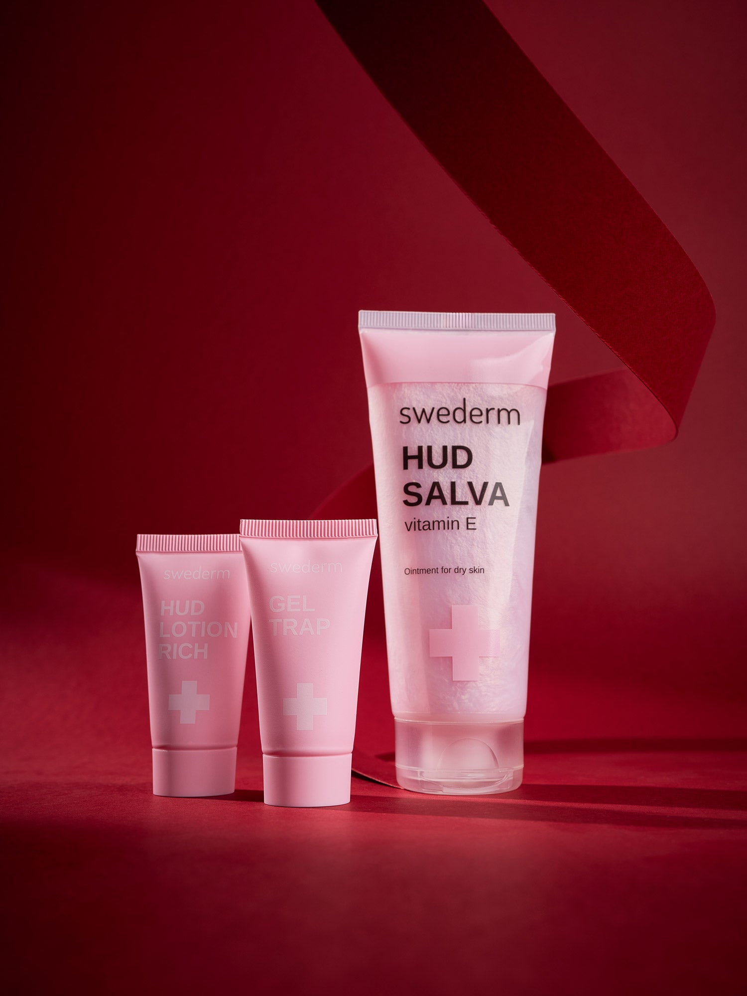 HUDSALVA VITAMIN E koi i wspiera naturalne procesy odnowy skóry, HUDLOTION RICH zapewnia głębokie odżywienie i miękkość, a GEL TRAP natychmiast przywraca nawilżenie bez uczucia lepkości.